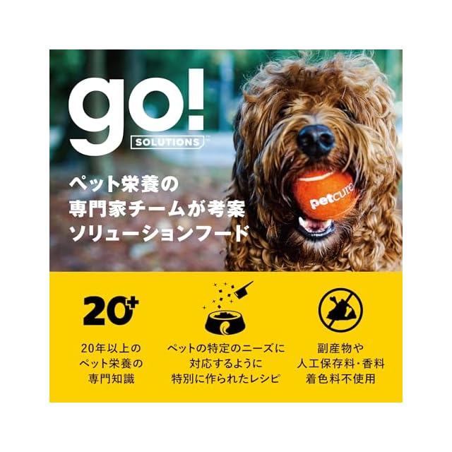 【厳選した食材で、美味しくお悩みを解決】20年以上のペット栄養の専門知識と厳選した安心食材。美味しく健康的にお悩みを解決する最適なレシピ。それがGO!SOLUTIONです。