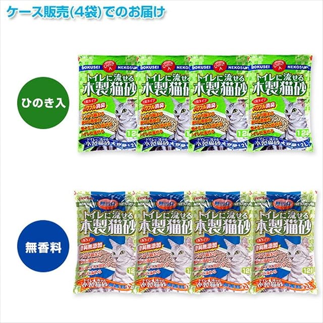 商品名:常陸化工 FineCat トイレに流せる木製猫砂 大粒 パワフル消臭 12L 4袋入 [ケース品]