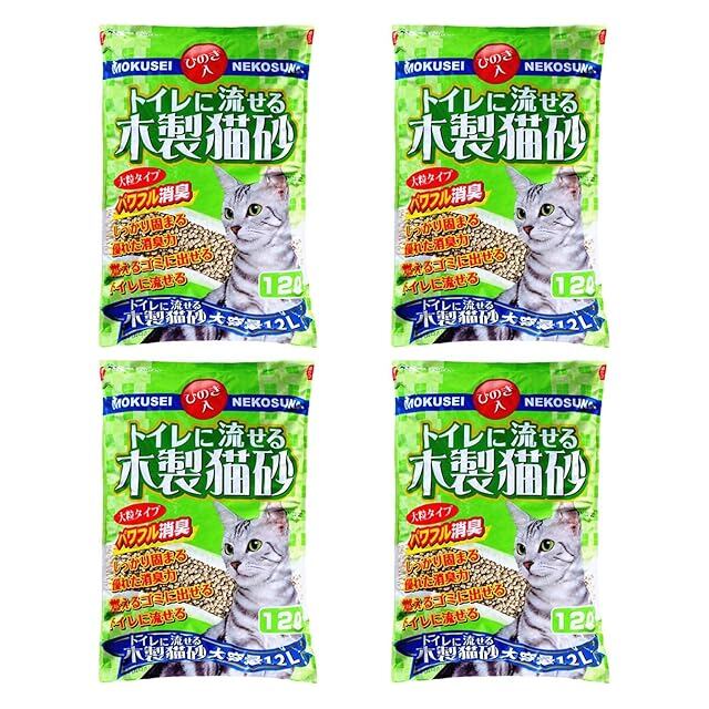 常陸化工 FineCat トイレに流せる木製猫砂 大粒 パワフル消臭 12L 4袋入 [ケース品]