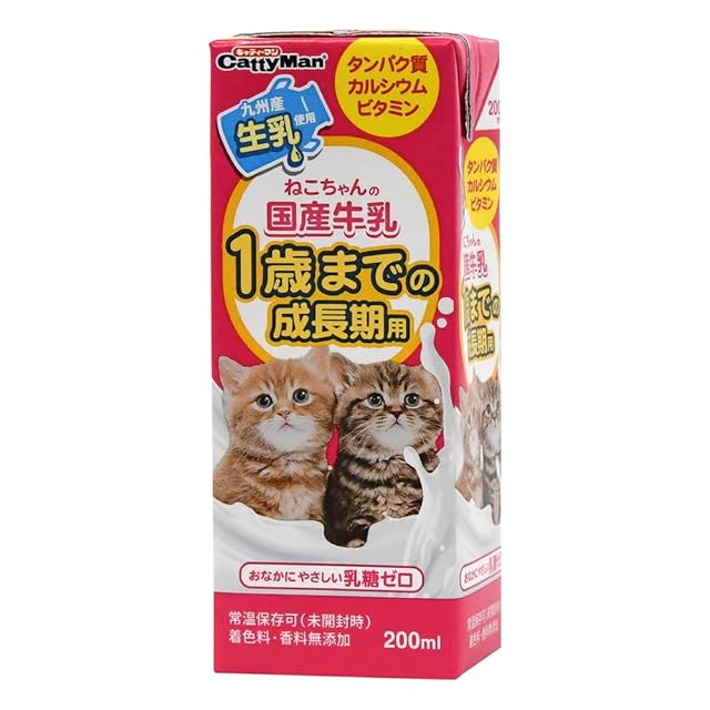商品名:キャティーマン (CattyMan) ねこちゃんの国産牛乳 1歳までの成長期用 200ml×24個入り 【ケース販売】