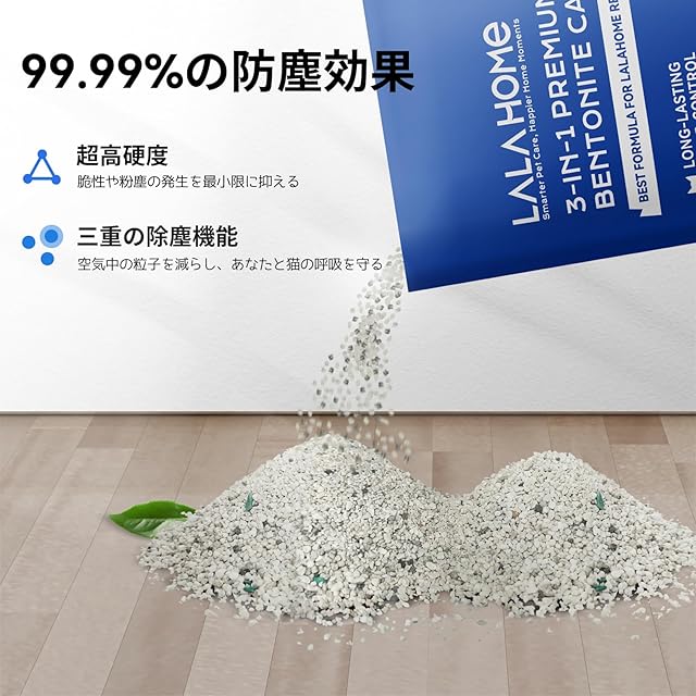 商品名:LALAHOME 3in1 鉱物系猫砂 ナトリウムベースのベントナイト猫砂 無塵・消臭・軽量で耐久性のある取扱いやすい猫トイレ用砂 ガッチリ固まるcat litter 猫トイレ・自動トイレに対応 無香料 猫と飼い主に優しい 6.8kg/袋
