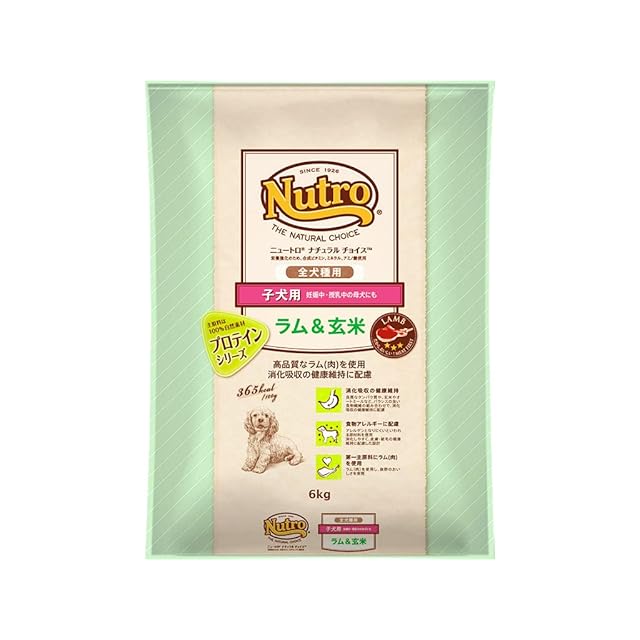Nutro ナチュラルチョイス 子犬用 全犬種用 ラム&玄米 6kg ドライフード ふやけやすい粒 総合栄養食 子いぬ用 パピー 妊娠中・授乳中の母犬にも 仔犬用 ドッグフード 犬 大容量 自然素材 香料・着色料 無添加 食物アレルギーに配慮 ニュートロ