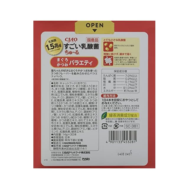 商品名:チャオ (CIAO) すごい乳酸菌ちゅ~る まぐろ・かつおバラエティ 30本 猫用おやつ