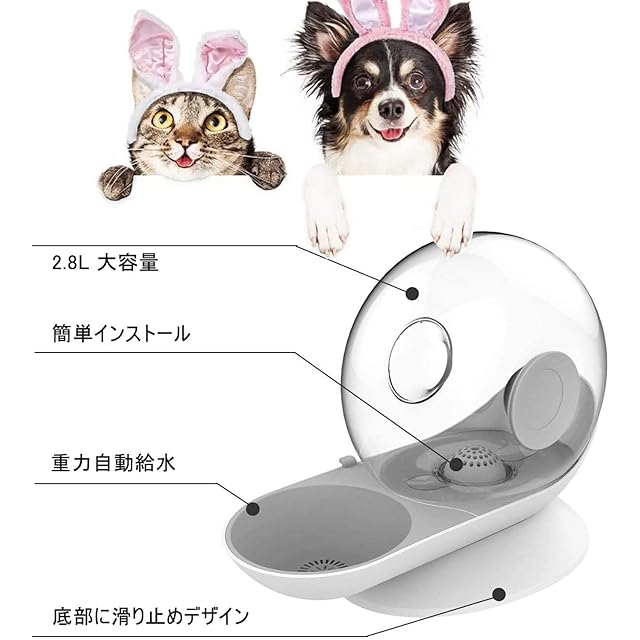 【カタツムリ形の猫水飲み器&2.8L大容量】この猫水飲み器が可愛いカタツムリの形に設計され、猫ちゃんや犬ちゃんに水飲みの好みを呼び起こします。この水飲み器は2.8Lの容量で「サイズ:30*20*15センチ」、貯水量が十分なので、頻繁に水を補給する必要はありません。猫、犬などペットの水飲みに対応でき、長時間外出してもお水が切れる心配する必要もありません。安定とした楕円形の台座で、猫や犬に転倒する恐れがありません。