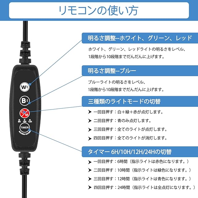 商品名:水槽 ライト 水槽用 照明 ledライト アクアリウムライト 防水 タイマ ー 水草 育成 熱帯魚 観賞魚 飼育 3つの照明モード 10段階明るさ調整 60-75の水槽対応