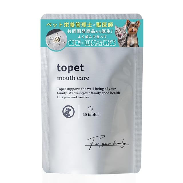 【お口のふりかけで歯垢・口臭のダブル対策】愛犬・愛猫の歯磨きが難しいと感じる飼い主様へ。topetの「お口のふりかけ」は、専用ミルでいつものごはんにふりかけるだけで、簡単にデンタルケアが可能です。歯磨き嫌いの愛犬・愛猫でも、大好きなごはんやおやつにふりかけて口腔ケア。愛犬・愛猫の歯垢・口臭ケアにオススメなデンタルふりかけです。