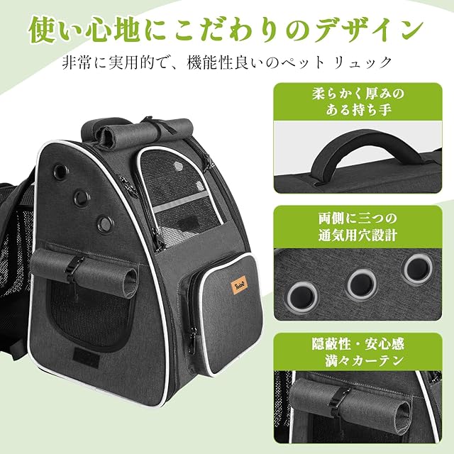 【優れた安定性】人間工学に基づき設計した幅広肩ベルトで長時間背負っても疲れません。肩への食い込みを軽減し、負担を軽減できるペットキャリー リュックです、胸元ベルトがあり、安定性いいです。丈夫な仕組みで底部はしっかりして型崩れしにくい設計、空間をしっかり確保します。ペットにも快適で過ごすことができます猫 りゅっく キャリー です。