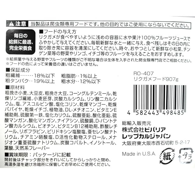 商品名:ビバリア リクガメフード 907g