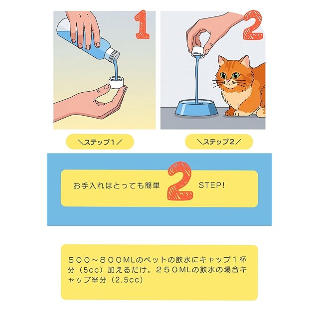 【✨無味タイプで飲みやすく、毎日続けやすい】フレーバーのない無味タイプで、味やにおいに敏感な犬・猫にも安心。違和感を感じさせず、自然にケアが習慣になります。