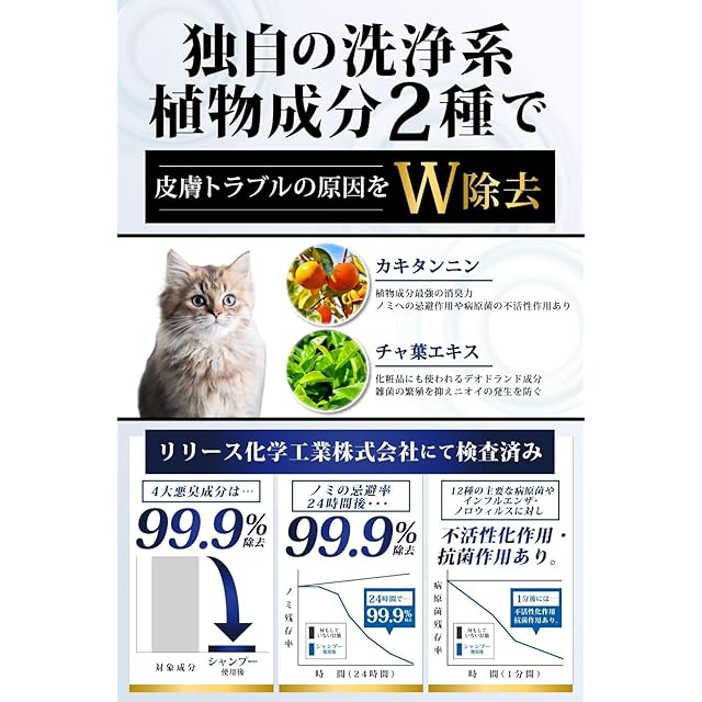 ✅【独自のW成分で消臭効果もバッチリ♪】植物最強の消臭能力(緑茶カテキンの50倍)を持つ『カキタンニン』を配合しております。同成分は消臭だけでなく厚生労働省が指定する5つの病原菌の不活性化や抗菌作用、のみへの忌避効果もございます。また化粧品にも使われるデオドランド成分『チャ葉エキス』により雑菌の繁殖を防ぎます。