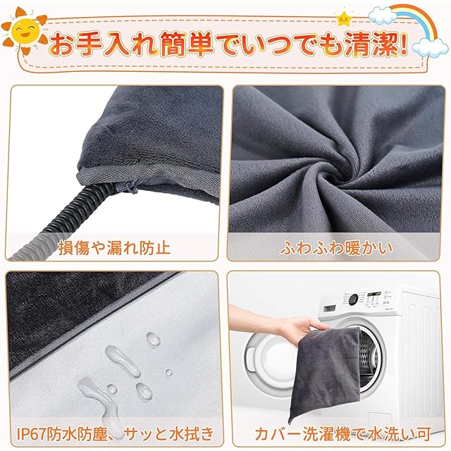 【ふわふわ生地・お手入れ簡単】カバーはフランネル生地を厳選しており、保温性バッチリ、更にふかふかな肌触りを持ち、ペットにもやさしいです。取り外し可能でいつでも洗濯機で丸洗いできますのでお手入れ簡単です。ヒーターマット本体は先進のIP67防水コーティング生地で作られています、汚れてもサッと拭き取るだけとお手入れラクラク、冬にペットベッドに入れて最適です!マット本体は防水絶縁の上に、クッション性もあるため、カバーを使わなくてもご使用できます。