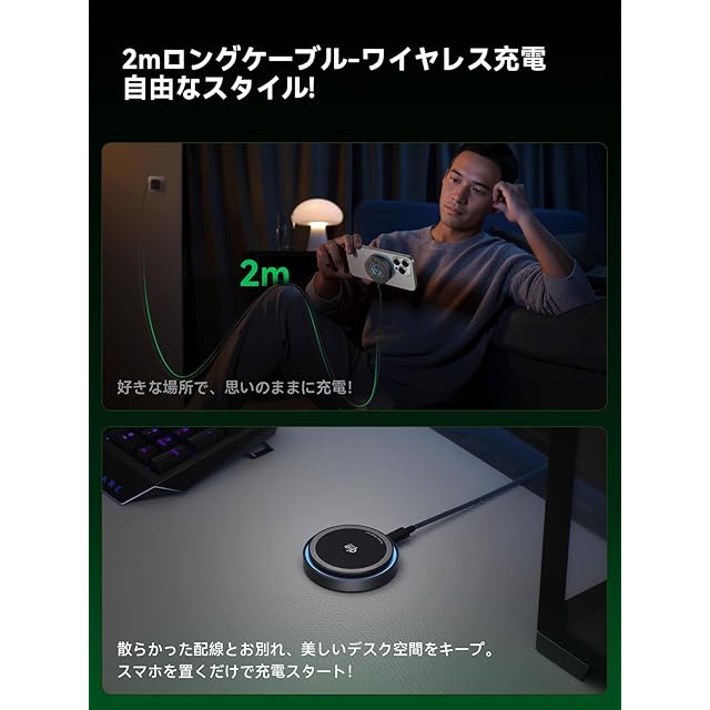 【幅広い互換性】Qi2対応iPhone(シリーズ17/16 iOS 26 以降)には25W高速充電。iPhone16(iOS 26以前)シリーズ、iPhone 12-15シリーズ、Samsung Galaxy S25シリーズおよびGoogle Pixel 10シリーズには15W充電。ワイヤレス充電ケース対応AirPodsには5W充電に対応。2.5mmを超える厚さのケース使用時は、磁気位置合わせと充電効率に影響する可能性があるのでご注意ください。い。