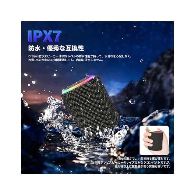 商品名:Bluetoothスピーカー ワイヤレススピーカー 小型 HIFI音質 大音量 ポータブルスピーカー【2025年の新アップグレード】 Bluetooth5.3 LEDライト付き Type-C充電 IPX7防水 AUX対応 マイク内蔵/TWS機能/TFカード対応/2台ペアリング お風呂 スマホ PC 車用