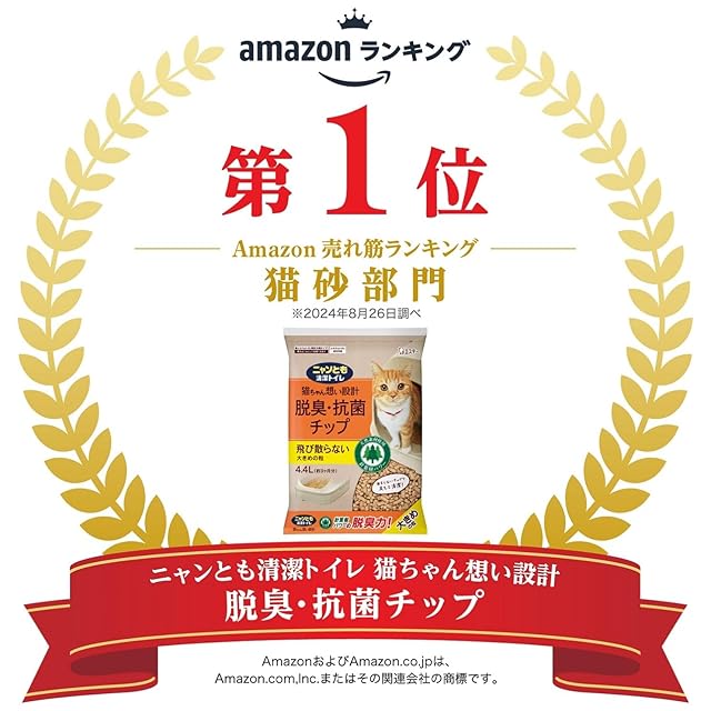 商品名:ニャンとも清潔トイレ 猫砂 [天然素材でパワフルに脱臭] 脱臭・抗菌チップ 極小の粒 4.4L システムトイレ 猫用 消臭 ネコ砂