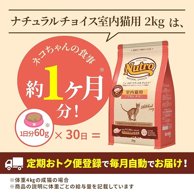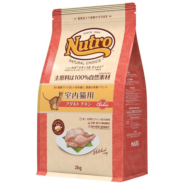 商品名:Nutro ナチュラルチョイス 成猫用 室内猫用 アダルト チキン 2kg ドライフード 総合栄養食 1歳以上 キャットフード 猫 厳選自然素材 下部尿路の健康維持 香料・着色料 無添加 ニュートロ