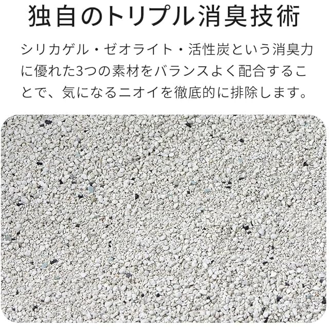 ✅シリカゲル・ゼオライト・活性炭という消臭力に優れた3つの素材をバランスよく配合することで、 気になるニオイを徹底的に排除します。原材料のベントナイト(鉱物)は吸水性に優れているので、少量の砂で素早く固まります、 また、凝固力が非常に高いので、固まりは崩れることなく簡単にすくえて快適です。