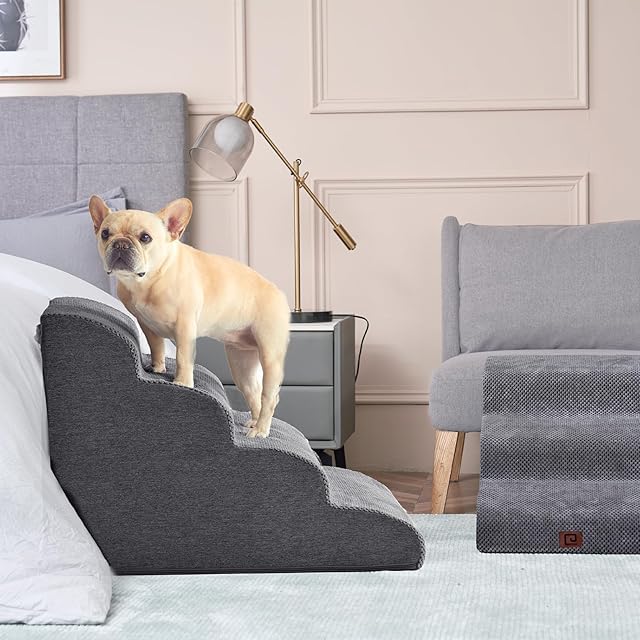EHEYCIGA 犬 階段 ステップ ペット階段 ドッグステップ 犬 スロープ 高密度 滑り止め付き 安定性 カバー取り外し可能 洗える 小型犬適用(4段,グレー)