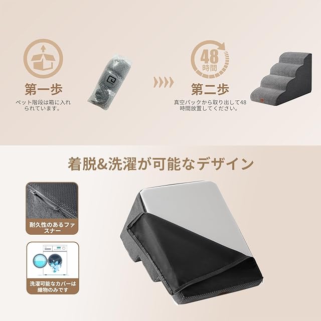 【洗濯】犬用ステップに取り外し可能で洗えるカバーが付いており、ウール製で手洗いまたは洗濯機で洗うことができますので、清掃時間を節約することができます。