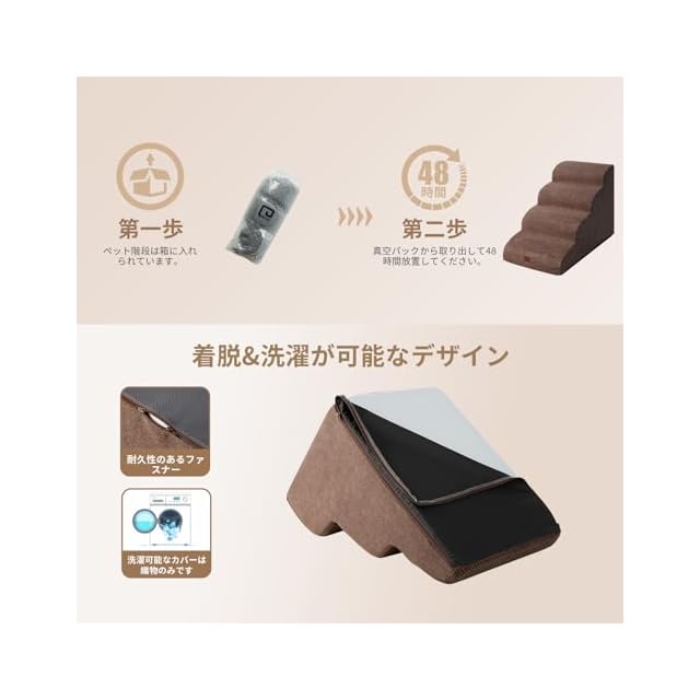 商品名:EHEYCIGA 犬 階段 ステップ ペット階段 ドッグステップ 犬 スロープ 高密度 滑り止め付き 安定性 カバー取り外し可能 洗える 小型犬適用(4段,ブラウン)