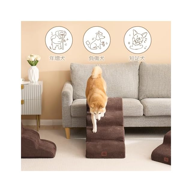 EHEYCIGA 犬 階段 ステップ ペット階段 ドッグステップ 犬 スロープ 高密度 滑り止め付き 安定性 カバー取り外し可能 洗える 小型犬適用(4段,ブラウン)