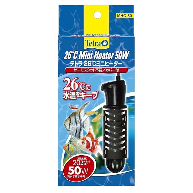 テトラ (Tetra) ミニヒーター 50W 自動温度調節器内蔵 難燃性プラスチックカバー付き 縦横設置 SP規格適合 観賞魚 金魚 メダカ 水槽