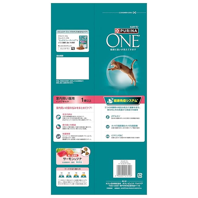 商品名:ピュリナ ワン ドライ 室内飼い猫用 インドアキャット サーモン&ツナ 2kg+200g 増量パック(550gx4袋入)