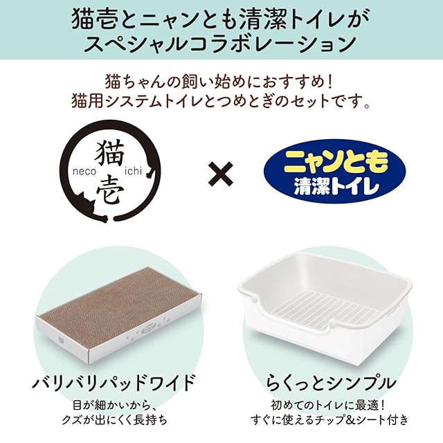 商品名:ニャンとも清潔トイレ 猫壱 猫 トイレ 本体 つめとぎ セット [約1か月分 猫砂・シート付] らくっとシンプルタイプ バリバリパッド ワイド 省スペース お手入れ 簡単 ホワイト&ライトグレー 猫用 システムトイレ 猫トイレ 子猫