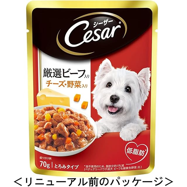 商品名:シーザー パウチ 成犬用 70gx16袋 ジューシー厳選ビーフ チーズ・彩り野菜入り 厳選素材 水分補給 とろみタイプ ウェットフード ドッグフード 犬 Cesar