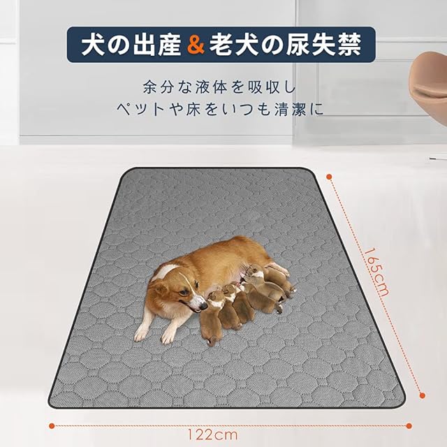 商品名:ペットシーツ 洗える ペット用おしっこマット 猫 犬用 おしっこパッド ペット用 トイレ下敷きマット 速乾 洗える 大判サイズ 多頭飼いに最適(グレー 165*122cm)