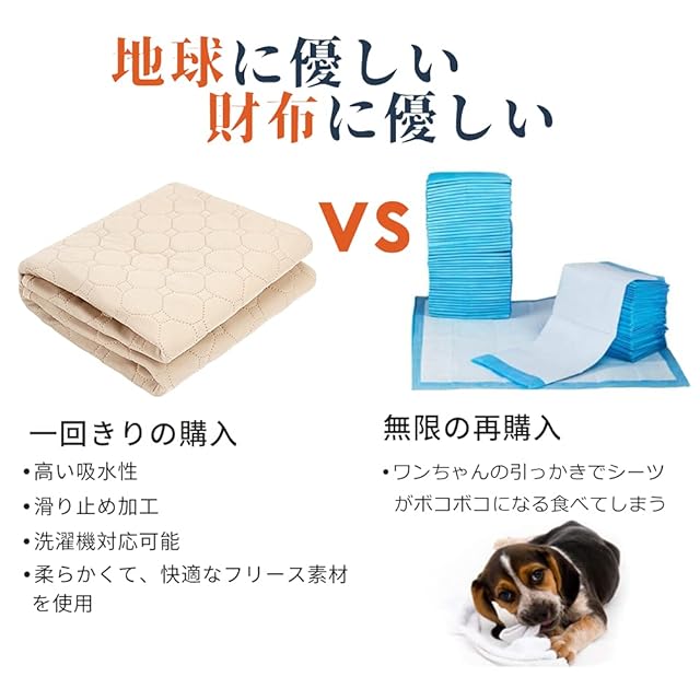 【地球環境や財布に優しい】無限の再購入が必要なる一回使い捨てペットシーツにより、何回も洗って繰り返し使えるのでお財布にやさしく、ゴミが出ないので環境にもやさしいトイレシートです