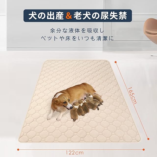 ペットシーツ 洗える ペット用おしっこマット 猫 犬用 おしっこパッド ペット用 トイレ下敷きマット 速乾 洗える 大判サイズ 多頭飼いに最適(ベージュ 165*122cm 2点入り)