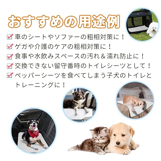 一度オシッコをしても30~60秒で吸収され表面はいつもサラサラ。紙のシーツのような交換の手間が省けます。ペットシーツやトレーの下に敷いて使用することもでき、汚れや傷つきも防止します