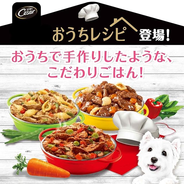 シーザー トレイ 成犬用 おうちレシピ 100g×24個 とろうまビーフ 緑黄色野菜&パスタ入り 水分補給 とろみタイプ 総合栄養食 ウェットフード ドッグフード 缶詰 犬 Cesar まとめ買い