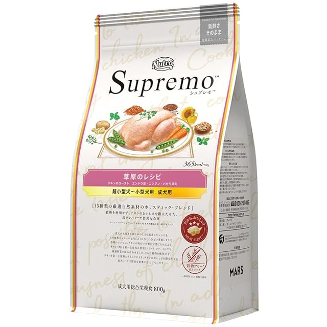 Nutro シュプレモ 超小型犬~小型犬用 成犬用 草原のレシピ チキン 800g ドライフード 小粒 総合栄養食 ドッグフード 犬 お試し グレインフリー 穀物フリー 厳選自然素材 香料・着色料 無添加 ニュートロ