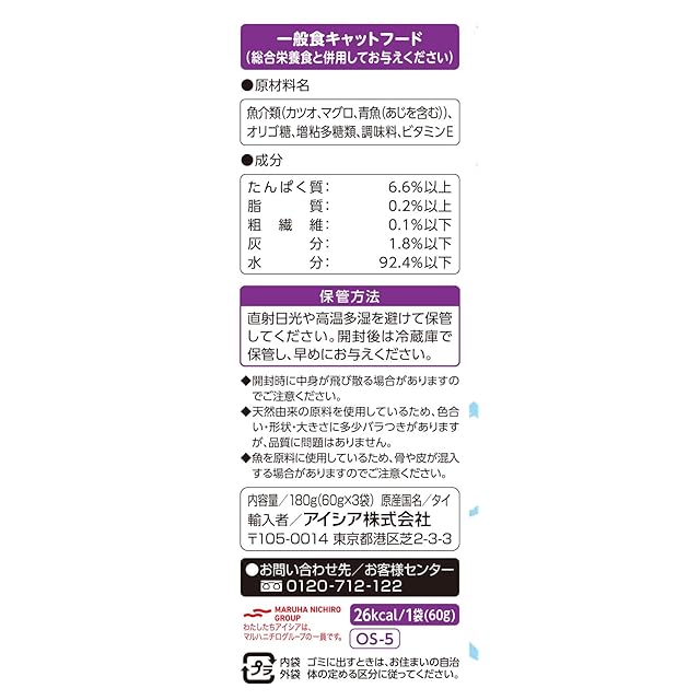 商品名:おさかな生活 アイシア あじ入りまぐろ 180g(60g×3袋) 6個入り