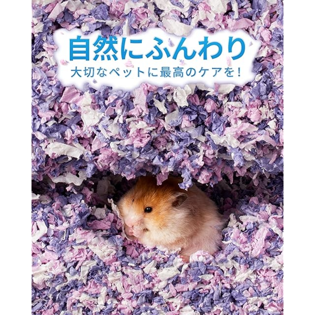 【99%の無塵・低アレルギー性】加熱殺菌および複数の除塵処理により、小動物の呼吸を守ります。天然染料を使用し、水に濡れても色あせしません。