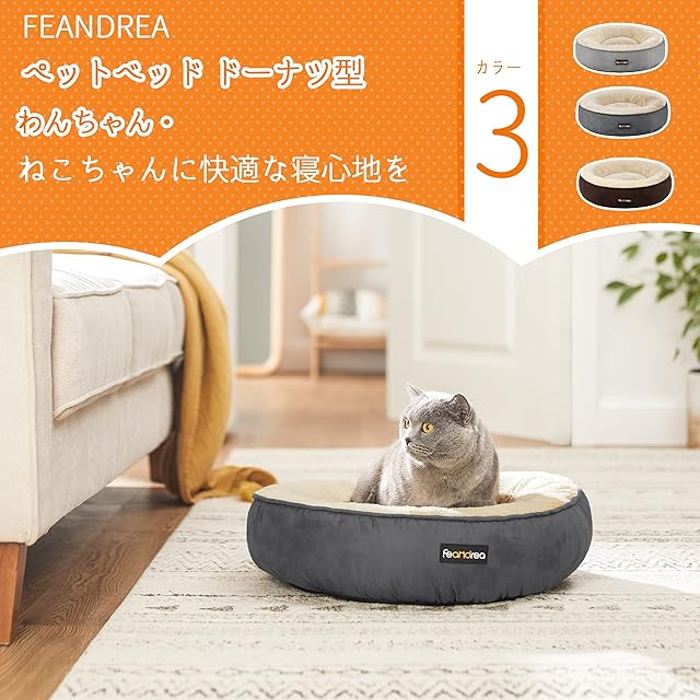 商品名:FEANDREA ペットベッド 猫 犬 ベッド 50×50cm ふわふわ 滑り止め 洗える ペットソファー 可愛いドーナツ型 ペットクッション 中小型犬用 マットPGW050G02