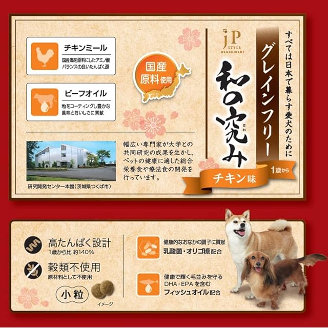 商品名:ジェーピースタイル 和の究み ドッグフード 小粒 グレインフリー チキン味 1歳から【国産/アルミ小分け】 1.5kg(300g×5)