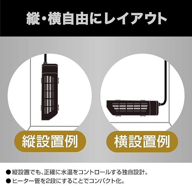【温度制御範囲】水温を15~35度にコントロールできるサーモスタットと120Wヒーター。