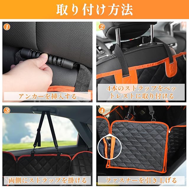 【安定した安全設計】運転中の安全を確保為に、 4つの調節可能な固定ストラップがあり、車によって調整できます。 その上に 犬用シートベルトも1本を追加した。急停車時犬を飛び出し防止できとかペットの乱暴もちゃんと制御できます。犬と運転手にしっかりな安全感を与えます。ベルトの長さは40-70cm調整可能なのでSUVやトラックなどの全車種にもご使用いただけます。