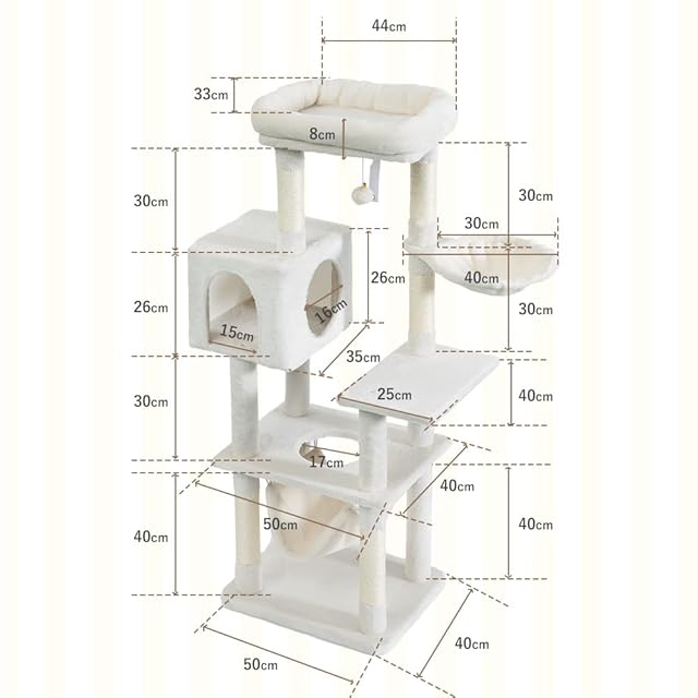 AIFY キャットタワー 抗菌 消臭 据え置き スリム 大型猫 中型 小型 ミニ 多頭飼い ハンモック おしゃれ かわいい 爪とぎ おもちゃ 猫タワー ねこ 爪研ぎ 麻紐 子猫 シニア 省スペース コンパクト 140cm アイボリー