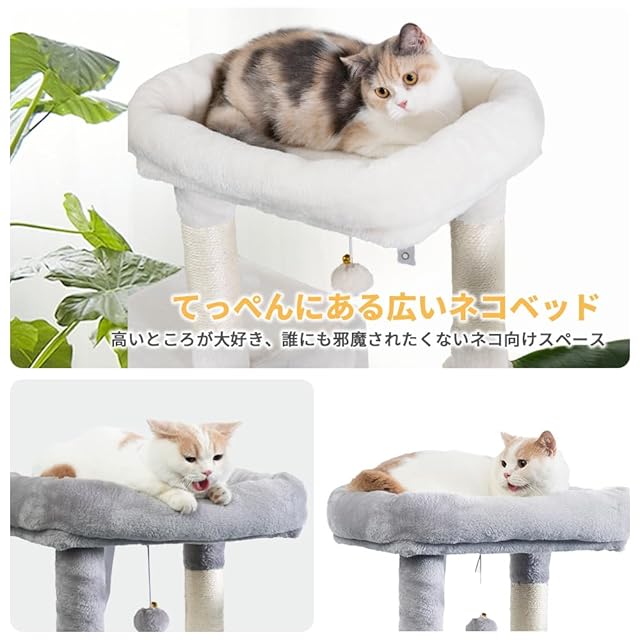 商品名:AIFY キャットタワー 抗菌 消臭 据え置き スリム 大型猫 中型 小型 ミニ 多頭飼い ハンモック おしゃれ かわいい 爪とぎ おもちゃ 猫タワー ねこ 爪研ぎ 麻紐 子猫 シニア 省スペース コンパクト 140cm アイボリー