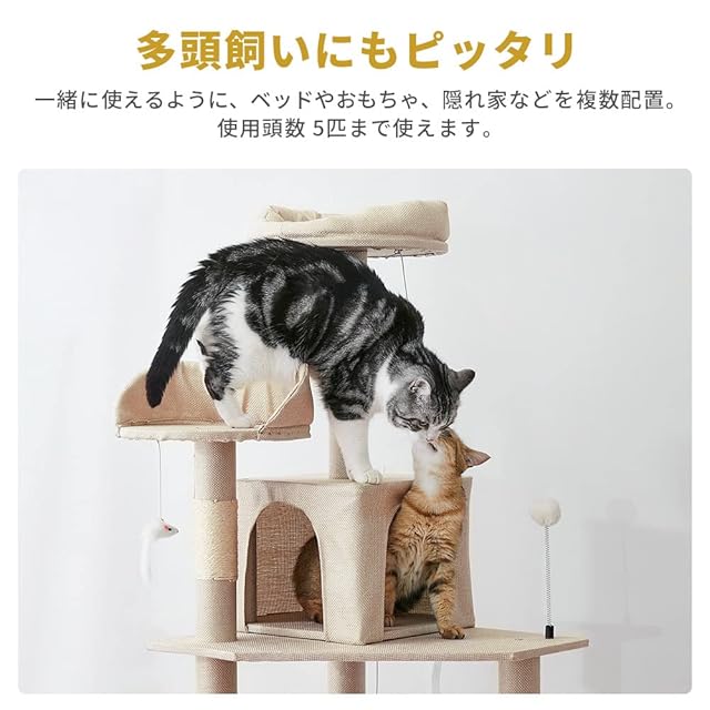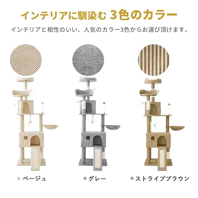 商品名:AIFY キャットタワー 据え置き スリム 大型猫 大型 中型 多頭飼い ハンモック おしゃれ かわいい 爪とぎ おもちゃ 猫タワー ねこ 安定 頑丈 爪研ぎ 麻紐 子猫 シニア 省スペース ファブリック素材 夏 オールシーズン 年中使える 170cm 杢グレー