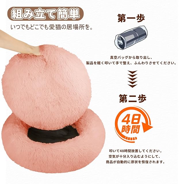 商品名:猫 ベッド 犬 ベッド クッション グッズ - ラウンド型 もふもふ 丸型 OYANTEN ドーナツふわふわ もこもこ ぐっすり眠る 洗える キャット 通年 猫用 小型犬用 ペット用品 (60cm, ピンク)