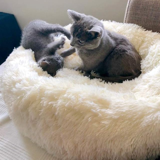 【十分温暖な猫クッション】このペットクッションはふわふわしたデザインを採用して、全体が柔らかくて、手触りもふんわりで、寒い冬で大切な猫と犬がペット主さんからの愛さを感じます。また、このペットベッドは長くて柔らかい毛があり、十分な暖かさを提供します。