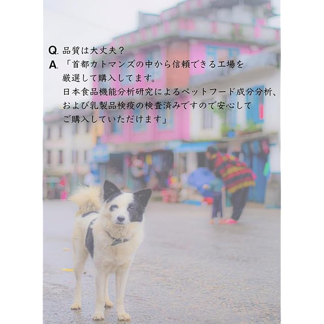 注意、免責、必ずお読みください ●老犬や子犬、乳製品アレルギーのあるわんちゃんや歯が弱いわんちゃんには与えないでください。 ●食べている時は口を傷つけたり、のどに詰まるなどの事故がないように飼い主様が責任を持って見守ってください。 ●ネパールで伝統的な製法で作られておりますので形、色、匂いに個体差がございます。尖ったチーズもありますのワンちゃんに与える前にお確かめください。 ●防カビ剤や保存料を使用せずに手作りしてますので、カビが生じてしまう場合があります。 ●ヤクの毛などが付着しているかもしれません。もしカビ、ヤクの毛等がありましたら水洗いし、水分をふき取ってから天日干ししてください。 ●食べて終わった水分を拭いて乾燥させて保管してください。 ●小さくなったら飲み込まんでしまわないように、レンジで1-3分温め、柔らかくして冷ましてから食べさせてください。●幼児、子供、ペットの触れない場所に保管してください。●直接日光、高温多湿の場所を避けて保管してください。