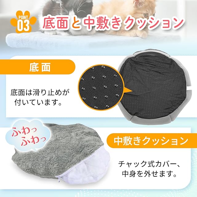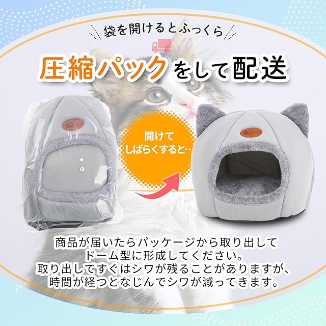 商品名:NSK 猫ベッド ペットベッド キャットハウス ドーム型 暖かい ふわふわ 寒さ対策 室内用 洗える クッション付 (グレー, M)