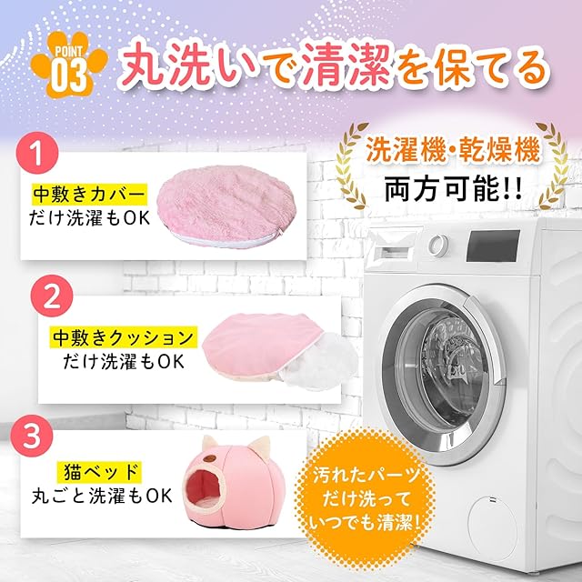 商品名:NSK 猫ベッド ペットベッド キャットハウス ドーム型 暖かい ふわふわ 寒さ対策 室内用 洗える クッション付 (ピンク, L)