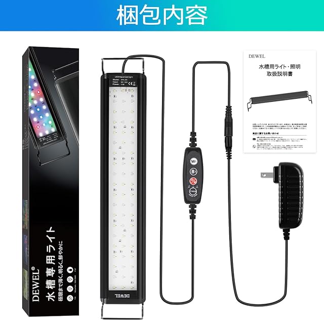 【幅30-45CMの水槽対応 】ブラケットにより、伸縮できて、30-45CMの水槽に使用可能です。取付け作業も簡単にできます、水槽に直接置くだけでいいです。(両サイドのブラケットにはストッパーがありませんので、取り付ける際に注意してください。)(ご注意:アダプタ―は防水設計ではない、水槽ライトは屋外でご利用しないでください。)