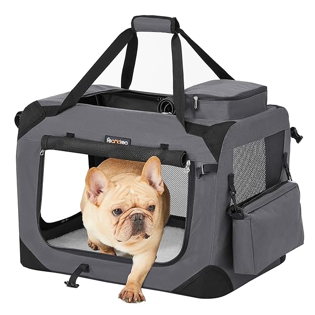 FEANDREA ペットキャリー 犬 猫 キャリーバッグ キャリーケース 折りたたみ 50×35×35cm グレー PDC50G01